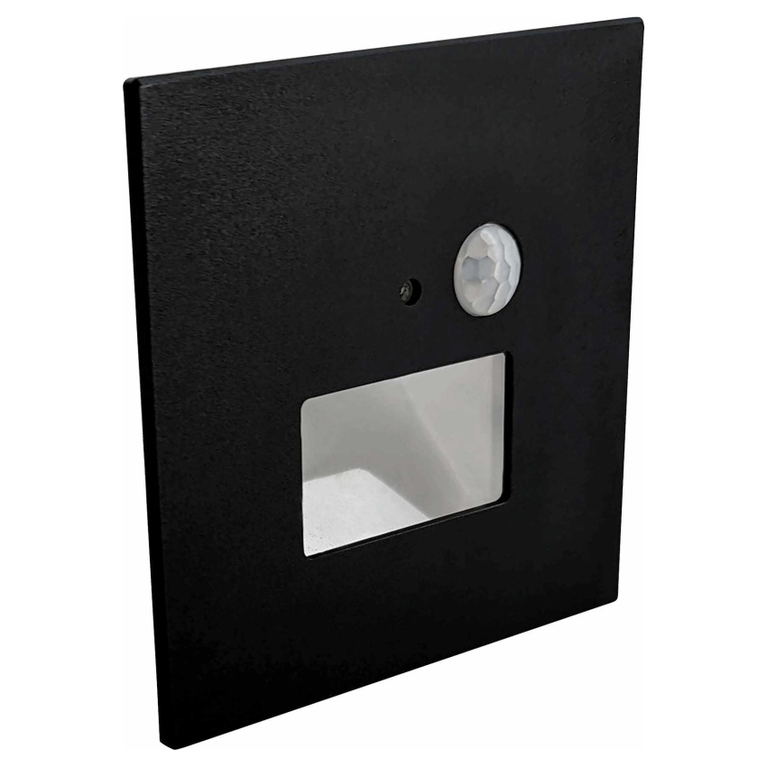 GREENLUX GXLL092 JACK PIR Black 1,5W CCT 75/120lm - Nástěnné vestavné LED svítidlo s PIR pohybovým senzorem