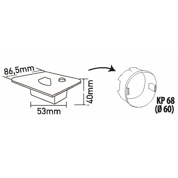 NÁSTĚNNÉ VESTAVNÉ LED SVÍTIDLO Těleso svítidla tvoří lakovaný hliník, difuzor polykarbonát. Energeticky efektivní svítidlo. Integrovaný vnitřní napájecí zdroj CCD LED. Obsahuje infračervené čidlo pohybu a soumrakový spínač. Parametry snímačů nejsou nastavitelné. Jejich hodnoty jsou optimálně nastaveny pro noční provoz. Možnost změny teploty chromatičnosti pomocí přepínače. Vhodné k decentnímu osvětlení schodišť a obvodových zdí. Určeno pro montáž do krabice KP 68.