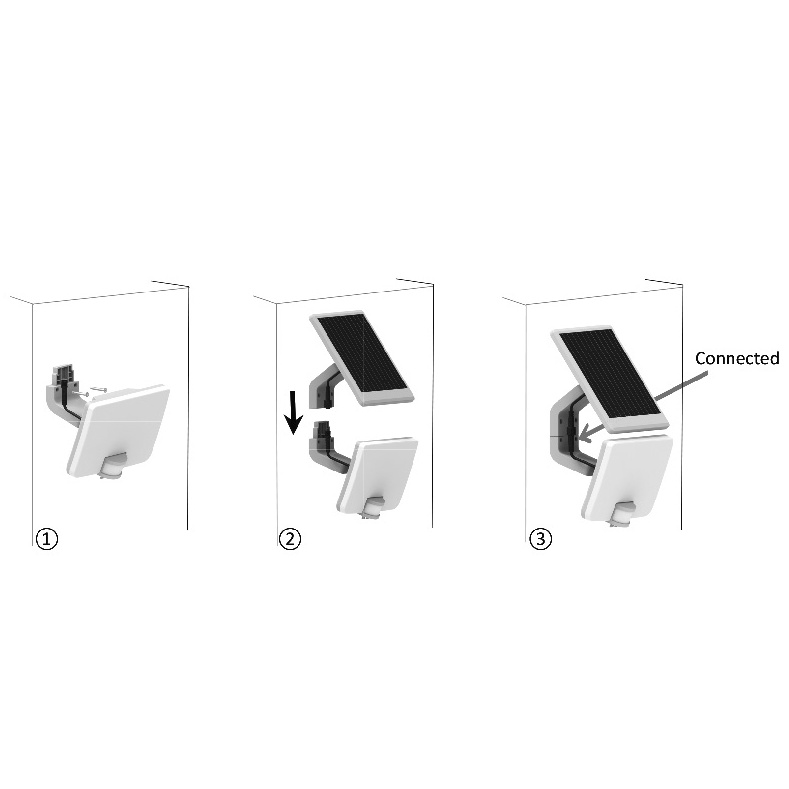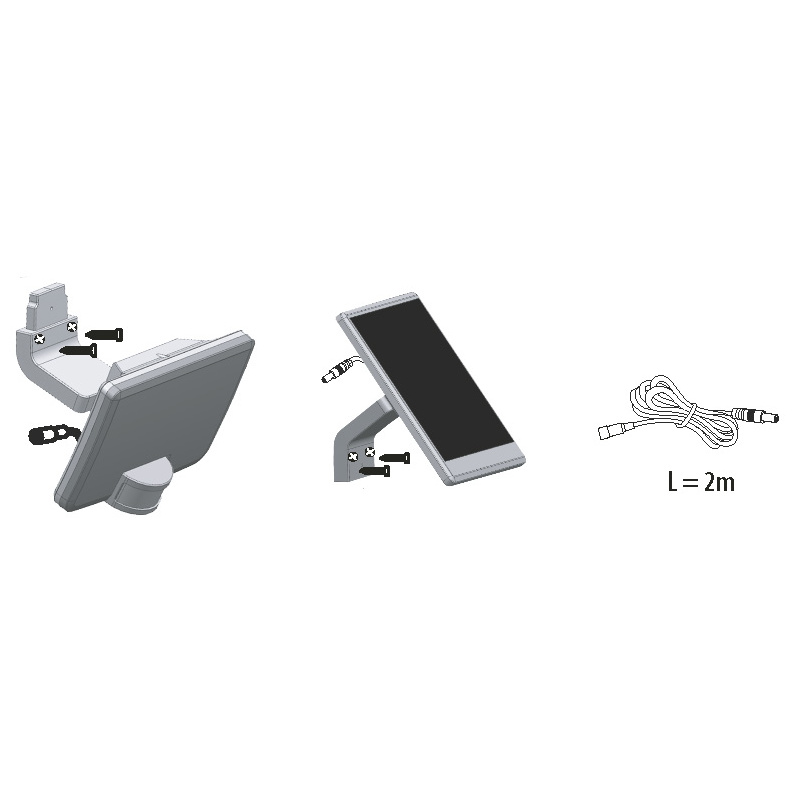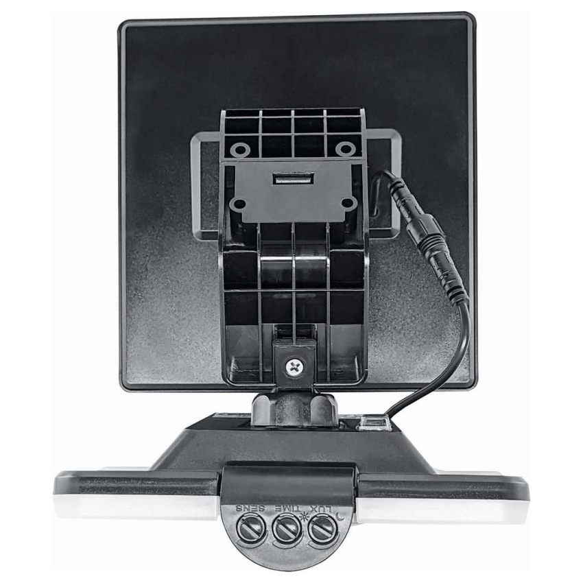 BATERIOVÉ LED SOLÁRNÍ SVÍTIDLO Moderní, energeticky úsporné LED svítidlo se solárním panelem. Těleso svítidla tvoří akrylonitryl-butadien-styren (ABS), difuzor polykarbonát (PC). Krytí IP54 poskytuje odolnost proti průniku prachu a vody. Konstrukce umožňuje polohování LED modulu a solárního panelu v horizontálním i vertikálním směru. Napájení svítidla zajišťuje interní lithium-iontová baterie (Li-ion 2000mAh, 3,7V), která je nabíjená solárním panelem. Svítidlo je možné sestavit a instalovat v kompletu se solárním panelem, nebo odděleně svítidlo i solární panel. Solární panel je možné nainstalovat zvlášť na sluncem exponovaném místě až do vzdálenosti 2 metrů. Součástí příslušenství je propojovací kabel s konektorovým spojením. Zdrojem světla je LED modul s vysoce účinnými LED diodami SMD. Obsahuje infračervené čidlo pohybu (PIR) s plynulou regulací: - čas osvětlení (TIME) v rozsahu 10 - 60 sekund - rozsah detekce pohybu (SENS) v rozsahu 1 - 10 metrů - nastavení noc/den (LUX) od 15 do 1000 luxů Čidlo má možnost náklonu v rozsahu 0°- 150°. Možnost přepínání 3 módů: MÓD I - při detekci pohybu 100% světelný tok po nastavenou dobu 10-60s (pokud není pohyb detekován, svítidlo se zhasne) MÓD II - při detekci pohybu 100% světelný tok po nastavenou dobu 10-60s (pokud není pohyb detekován, svítidlo přejde na 10% světelného toku) MÓD O - trvale vypnuto
