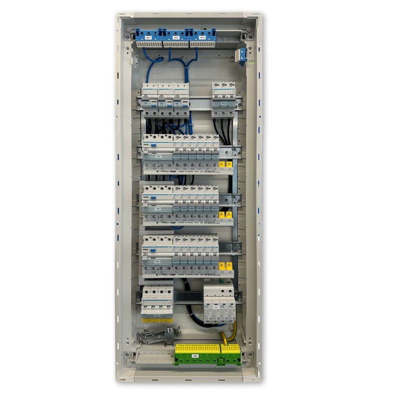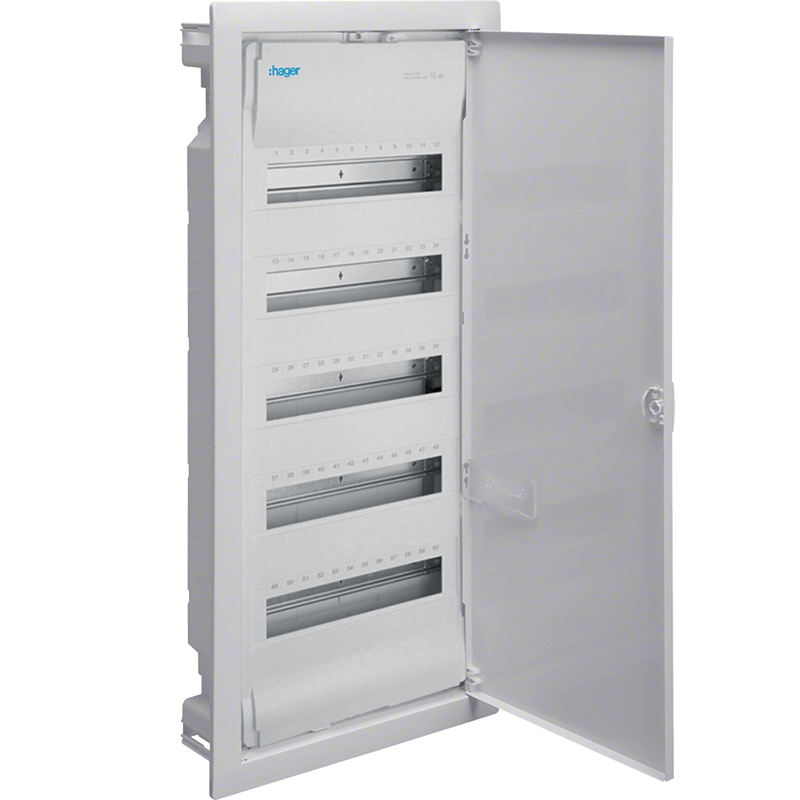 Rozvaděče jsou kompletně vybavené s bezšroubovými svorkami dle normy ČSN 332130 ed.4 Elektrické instalace nízkého napětí. Tento rozvaděč je určen pro zapuštěnou montáž do vnitřních prostor a je vybaven pěti lištami s kapacitou až 60 modulů (120 půlmodulových svorek). Disponuje neutrální i uzemňovací svorkovnicí a je vyroben z odolného plastu v bílé barvě RAL 9010. Díky krytí IP30 je vhodný pro instalace v suchém prostředí. Rozvaděč má jednu plnou neprůhlednou dvířkovou část bez zámku a poskytuje spolehlivou ochranu elektrických obvodů do jmenovitého proudu 63 A a napětí 400 V. Jeho konstrukce zajišťuje snadnou montáž pomocí šroubů a splňuje bezpečnostní test žhavicím drátem 650 °C.