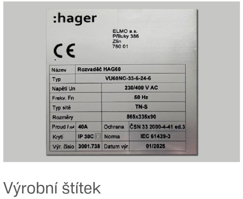 HAGER ROZVODNICE VOLTA VU60NC READY (VYDRÁTOVANÁ ROZVODNICE)