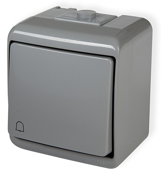 Spínač Karlik JUNIOR WHE-4 1/0 na povrchovou montáž, krytí IP 44, barva šedá, zvonkové tlačítko. Řada přístrojů Karlik plně vyhovuje požadavkům pro domovní elektroinstalace ve vlhkém vnitřním i venkovním prostředí. Vyniká snadnou a rychlou montáží, dostatečným prostorem pro připojení vodičů a ladným ergonomickým tvarem vhodným do všech typů instalací.