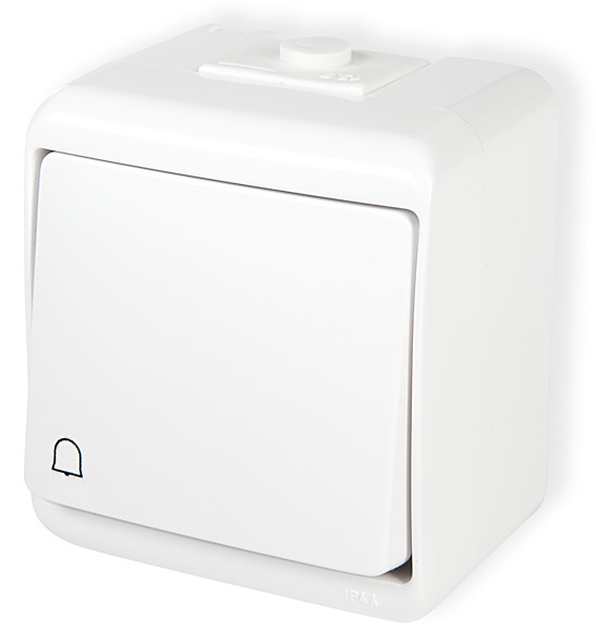 Spínač Karlik JUNIOR WHE-4 1/0 na povrchovou montáž, krytí IP 44, barva bílá, zvonkové tlačítko. Řada přístrojů Karlik plně vyhovuje požadavkům pro domovní elektroinstalace ve vlhkém vnitřním i venkovním prostředí. Vyniká snadnou a rychlou montáží, dostatečným prostorem pro připojení vodičů a ladným ergonomickým tvarem vhodným do všech typů instalací.