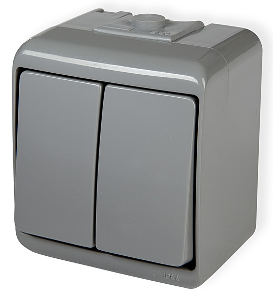 Domovní spínač Karlik JUNIOR WHE-2 č.5 - sériový přepínač, barva šedá, naomítkový, krytí IP 44. Řada přístrojů Karlik plně vyhovuje požadavkům pro domovní elektroinstalace ve vlhkém vnitřním i venkovním prostředí. Vyniká snadnou a rychlou montáží, dostatečným prostorem pro připojení vodičů a ladným ergonomickým tvarem vhodným do všech typů instalací.