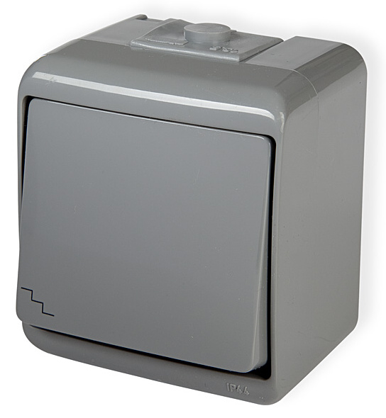 Domovní spínač Karlik JUNIOR WHE-3 č.6 - jednopólový, barva šedá, naomítkový, krytí IP 44. Řada přístrojů Karlik plně vyhovuje požadavkům pro domovní elektroinstalace ve vlhkém vnitřním i venkovním prostředí. Vyniká snadnou a rychlou montáží, dostatečným prostorem pro připojení vodičů a ladným ergonomickým tvarem vhodným do všech typů instalací.