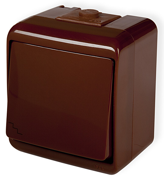 Spínač Junior WHE-3 na povrch. Vyhovuje požadavkům pro domovní elektroinstalace ve vlhkém vnitřním i venkovním prostředí. Vyniká snadnou a rychlou montáží, dostatečným prostorem pro připojení vodičů a ladným ergonomickým tvarem vhodným do všech typů instalací.