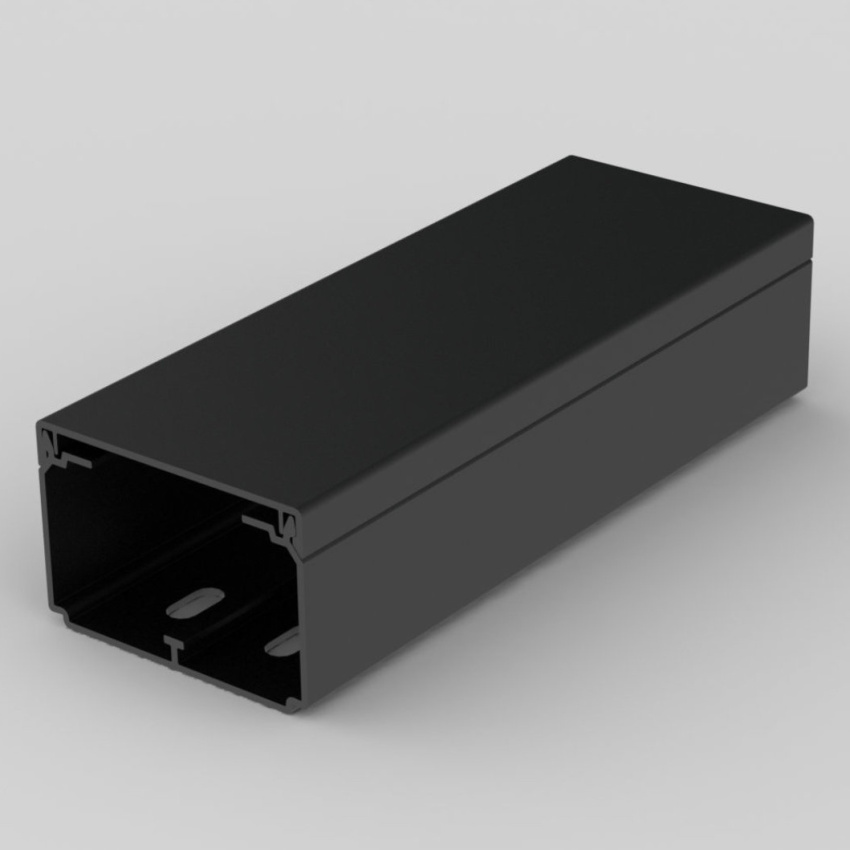 Lišta hranatá LH 60x40, černá, 2 m, karton. Klasický tvar. Určena pro montáž na stěnu, nebo na strop. Dvojitý zámek víka zvyšuje tuhost lišty a zajišťuje pevnější fixaci víka.