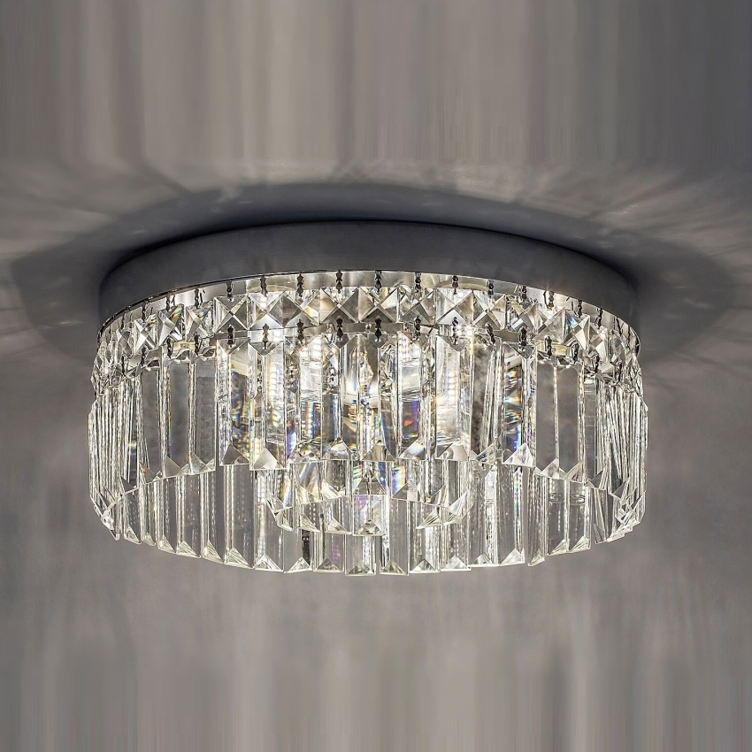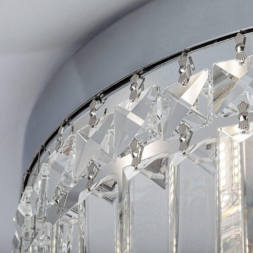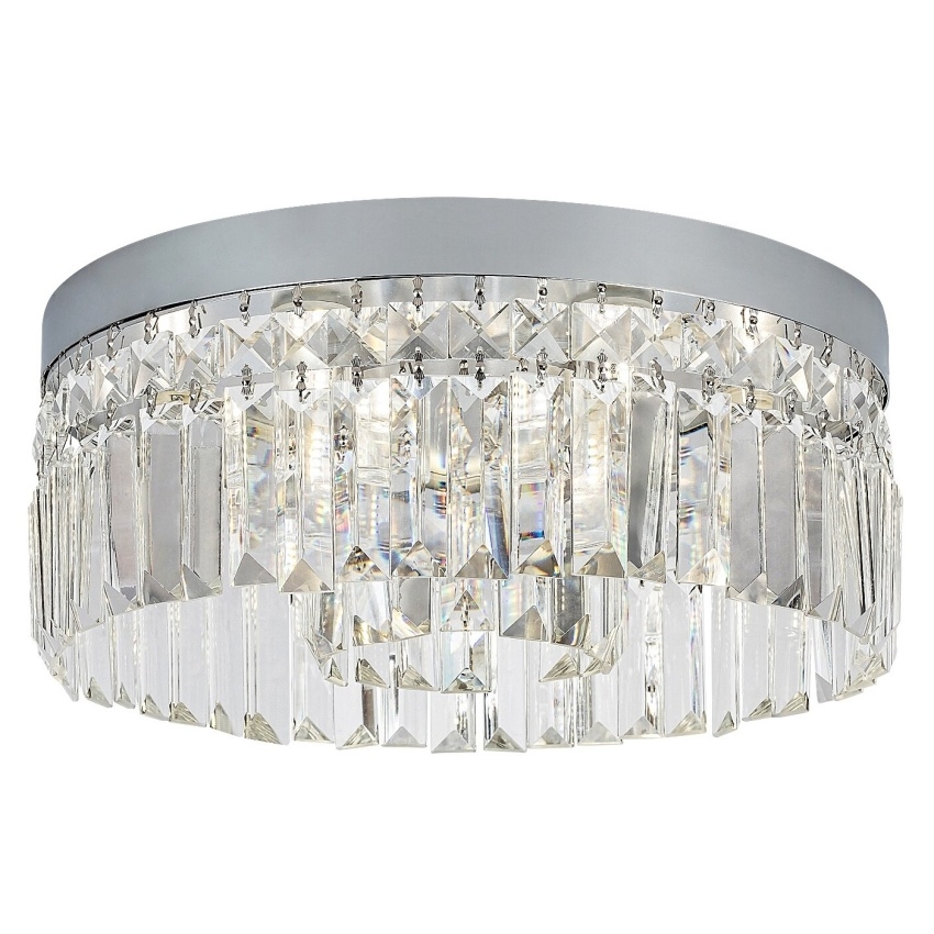 Luxusní koupelnové stropní svítidlo Rabalux Sybil zaujme svým elegantním designem a lesklým chromovým provedením. Kovová konstrukce doplněná o průhledné skleněné závěsy vytváří dojem klasického lustru a dodává interiéru nádech elegance. Průhledné skleněné prvky částečně zakrývají světelné zdroje a zajišťují působivé rozptýlení světla po celé místnosti. Svítidlo je vhodné pro šest žárovek s paticí G9, každou s maximálním příkonem 28 W. Krytí IP44 zaručuje odolnost proti vlhkosti a stříkající vodě, díky čemuž je svítidlo ideální pro použití v koupelně. Model se montuje na strop pomocí kulaté chromové základny a dodává se bez světelných zdrojů.