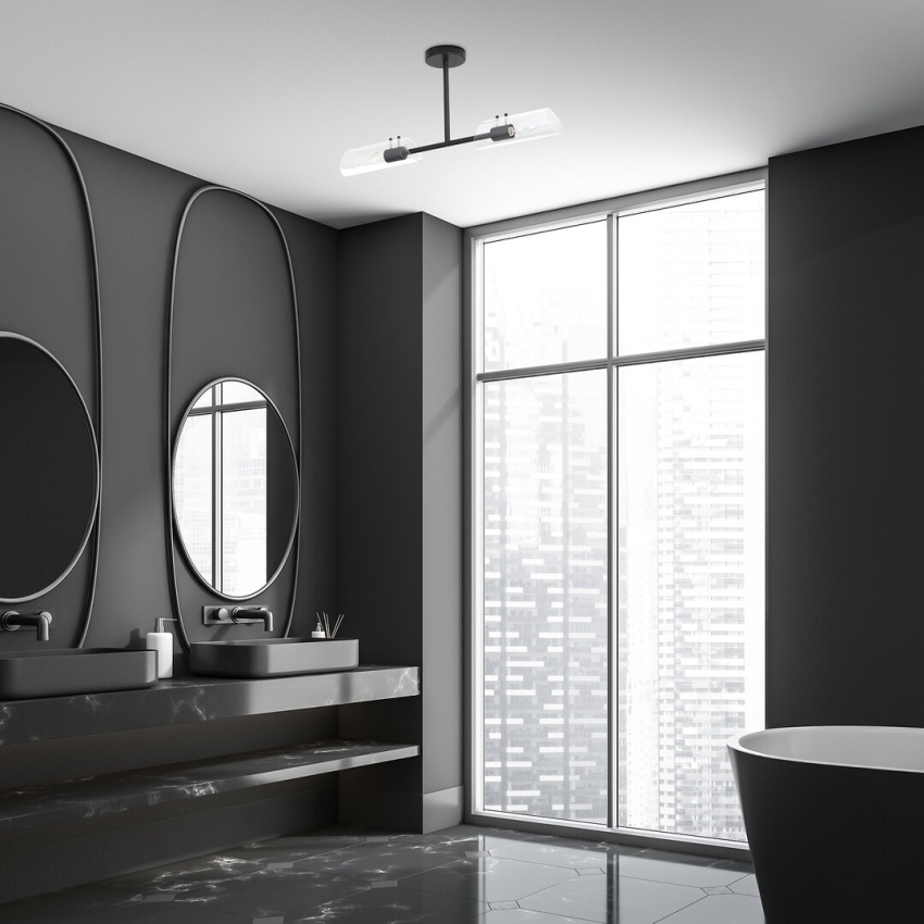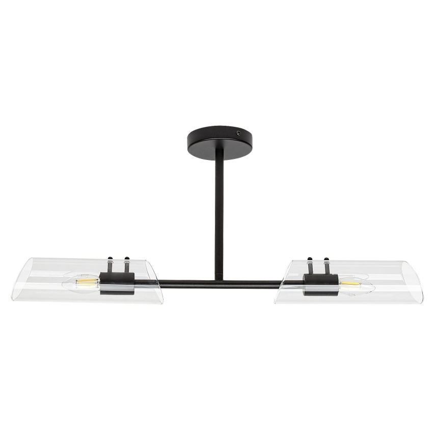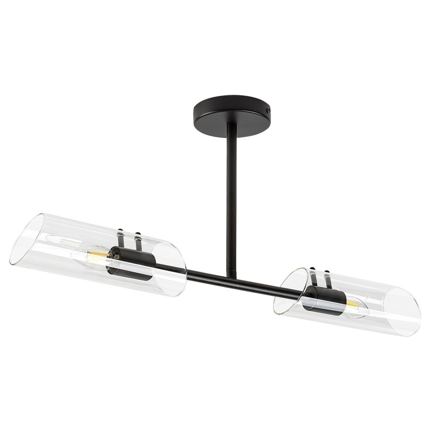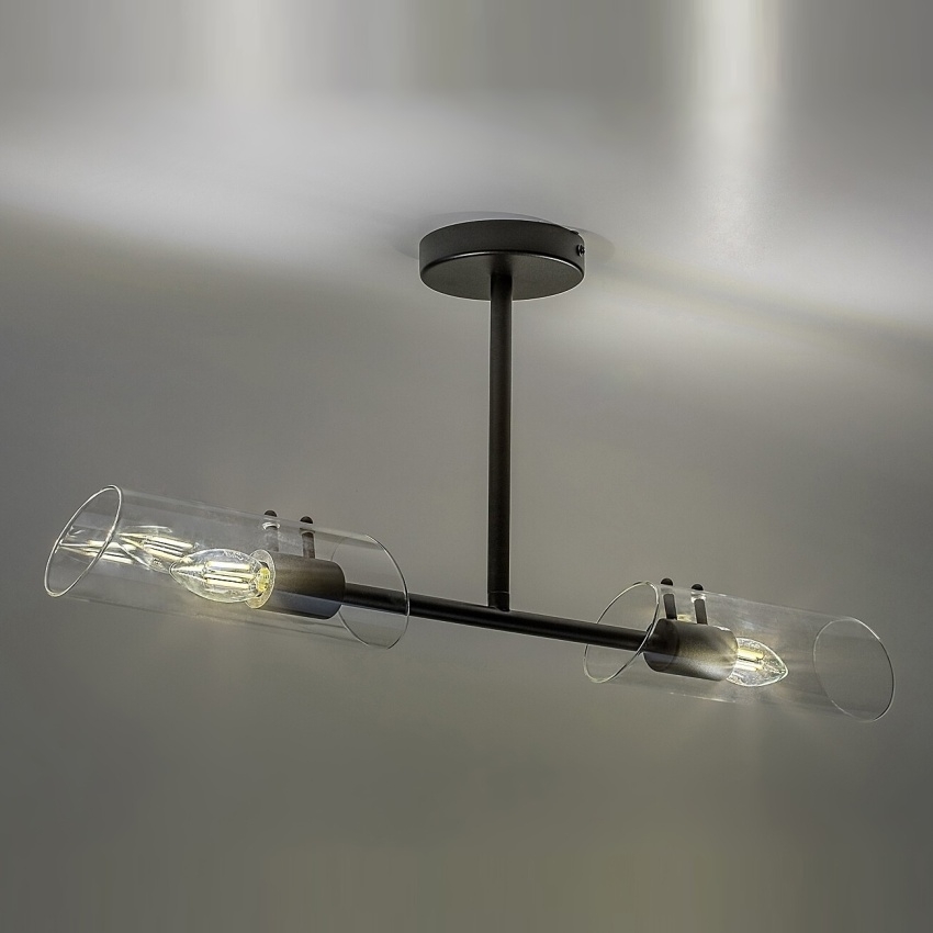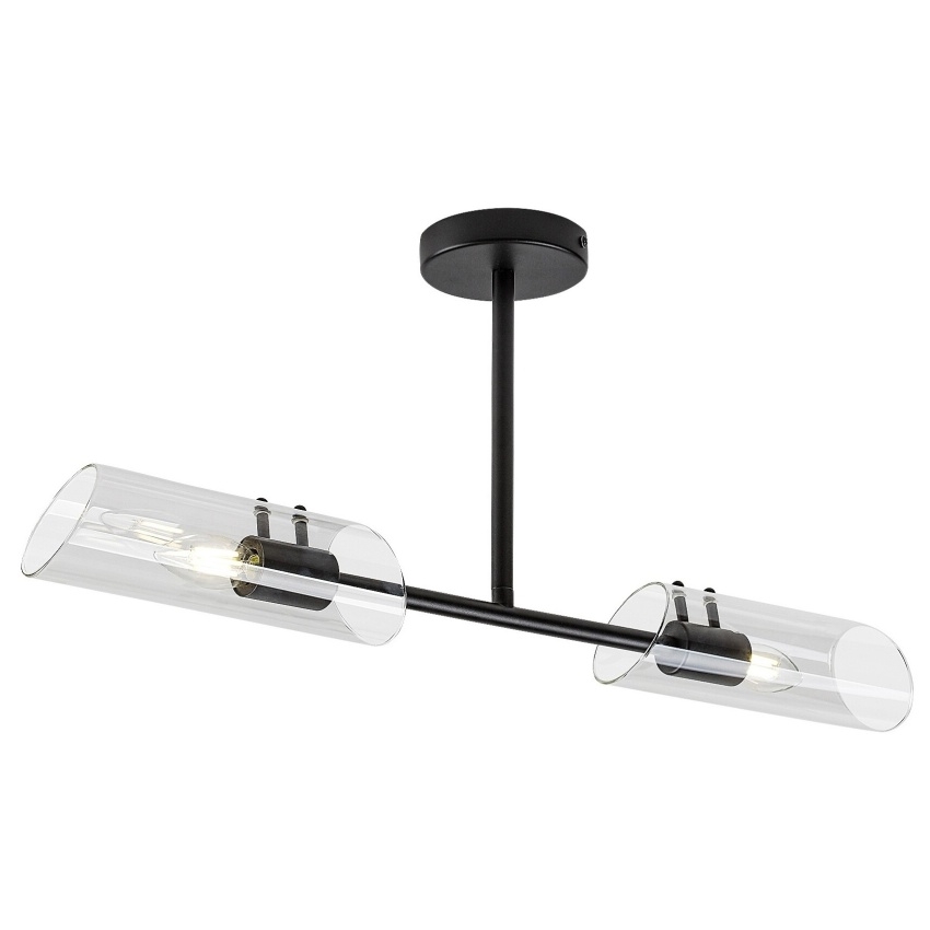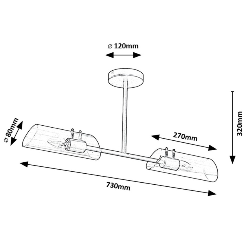 Moderní koupelnové stropní svítidlo Rabalux Teodoro v elegantním černém provedení zaujme svým originálním designem a funkčností. Kovové tělo svítidla má tvar písmene T, připevněné k okrouhlé základně, ze které vycházejí dvě lampové hlavice s průhlednými skleněnými stínítky. Šikmo seříznutá válcovitá stínítka umožňují plné rozptýlení světla a díky čirému sklu vyniknou dekorativní žárovky s netradičním tvarem. Svítidlo je určeno pro dvě žárovky s paticí E14 a maximálním příkonem 12 W. Krytí IP44 zajišťuje ochranu proti vlhkosti a stříkající vodě, díky čemuž je ideální pro použití v koupelně. Model se dodává bez světelných zdrojů.