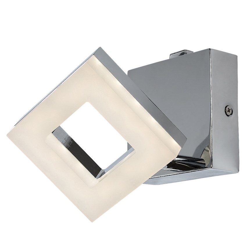 - Kovová lampa chromové barvy má uprostřed čtvercový výřez, bílé plastové stínítko a chromový čtvercový dekorativní podstavec pro montáž na stěnu. Hlavu svítilny lze naklánět nahoru a dolů, což umožňuje regulovat světlo z lampy Blas podle potřeby.