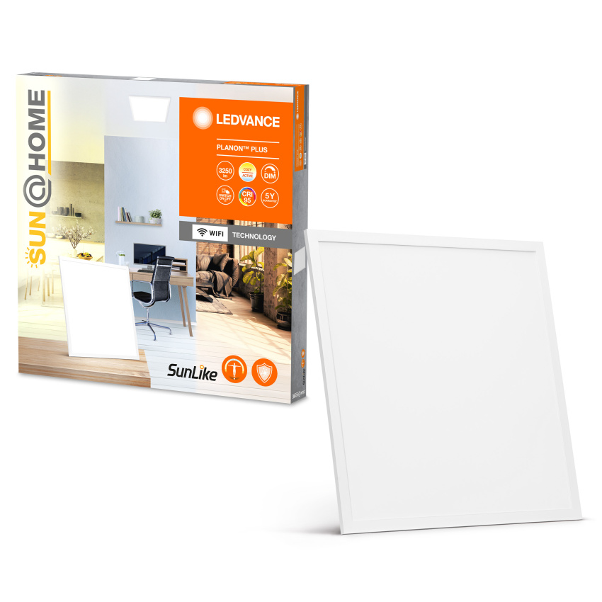Panelová svítidla s technologií Human Centric Lighting Technology. Vlastnosti produktu: Nastavitelná teplota barev pomocí laditelné bílé: 2 200…5 000 K. Ovládatelné pomocí LEDVANCE SMART+ WiFi aplikace (s minimem Android™ 4.4 nebo iOS 10.0). Možnost hlasového ovládání: Google Assistant nebo Amazon Alexa. Stmívatelné. Inovativní plněspektrální LED diody SunLike s CRI95. LED diody SunLike se sníženou modrou složkou v LED spektru. Inovativní technologie povláků svítidel bojujících proti choroboplodným zárodkům a pachům v domácnosti. Plně automatizovaná funkce biorytmu podle vaší polohy a času. Výhody produktu: Umožněte zvýšenou koncentraci a účinnost. Zlepšuje celkovou úroveň aktivity a denní bdělost. Zlepšuje rytmus a intenzitu spánku. Zlepšuje zrakové pohodlí. Umožňuje lepší úroveň čistoty vzduchu tím, že ničí zárodky a špatný zápach. Stejnoměrné rozložení světla. Snadná a rychlá instalace. Druh použití: Použití uvnitř. Kuchyně, obývací pokoje, dětské pokoje nebo domácí pracovny. Výbava / příslušenství: Pro ovládání pomocí aplikace nebo pro hlasové ovládání je zapotřebí kompatibilní systém Smart Home.. Pro ovládání pomocí aplikace LEDVANCE SMART + WiFi je zapotřebí chytrý telefon nebo tablet. Včetně kompletního příslušenství pro montáž a zapojení.
