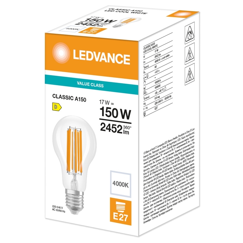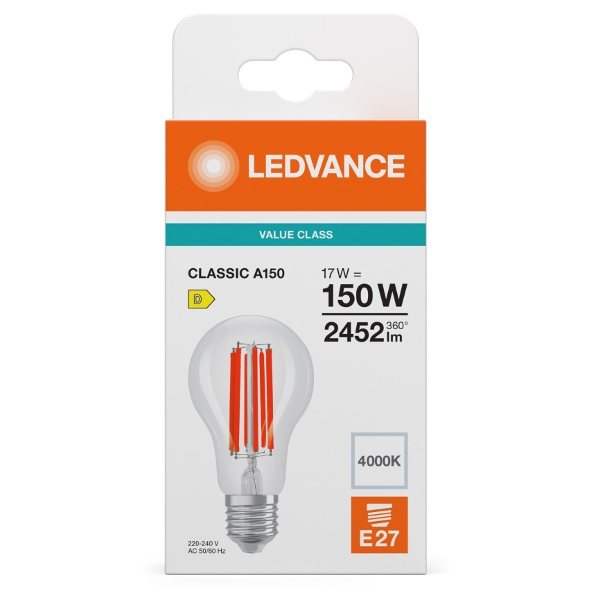LDV ZDROJ LED VALUE CLA150 17W 840 2452LM CL E27 V 4099854484513