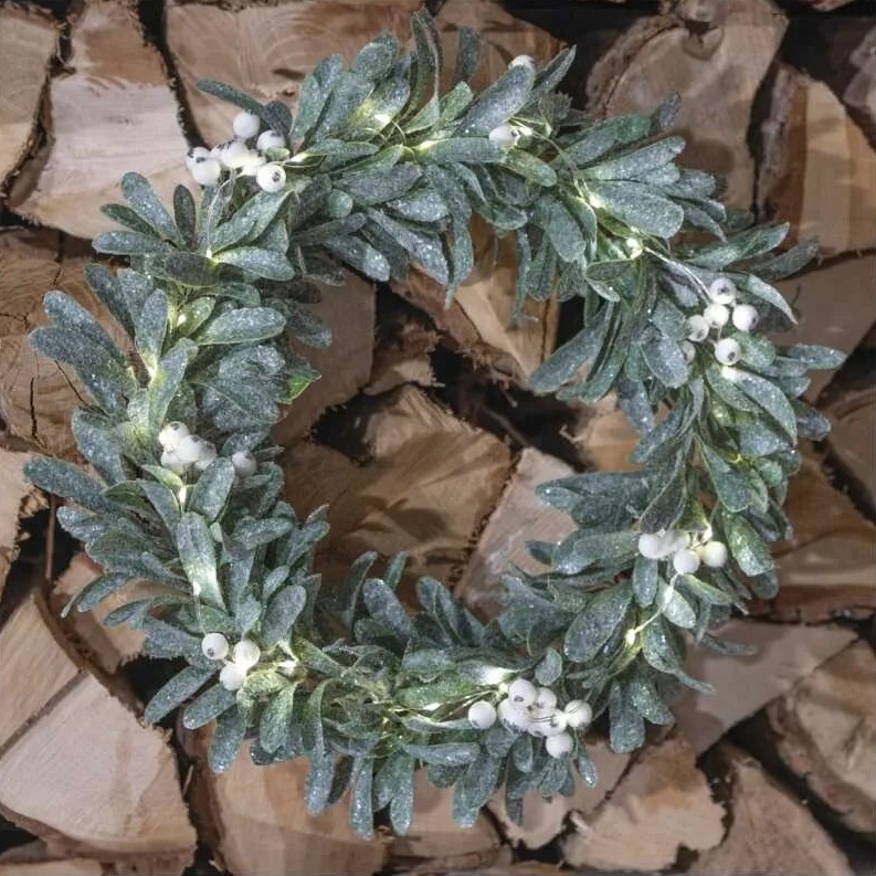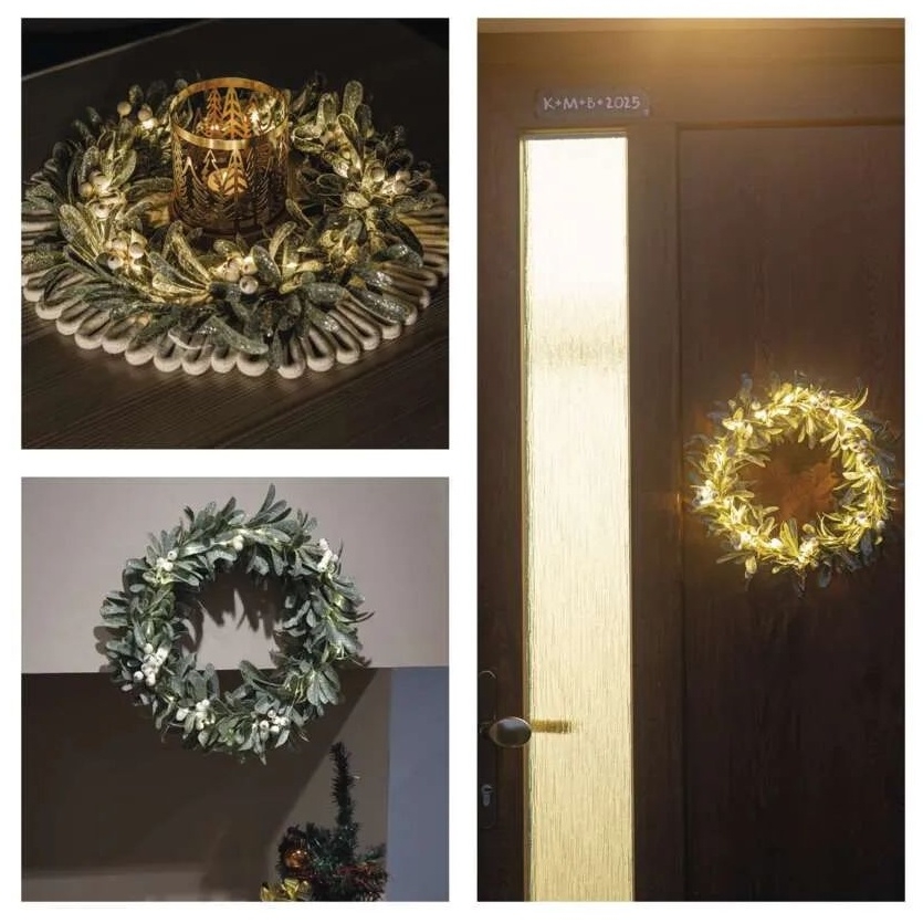 LED dekorace – věnec jmelí, 3× AA, teplá bílá, časovač EMOS DCTW28
