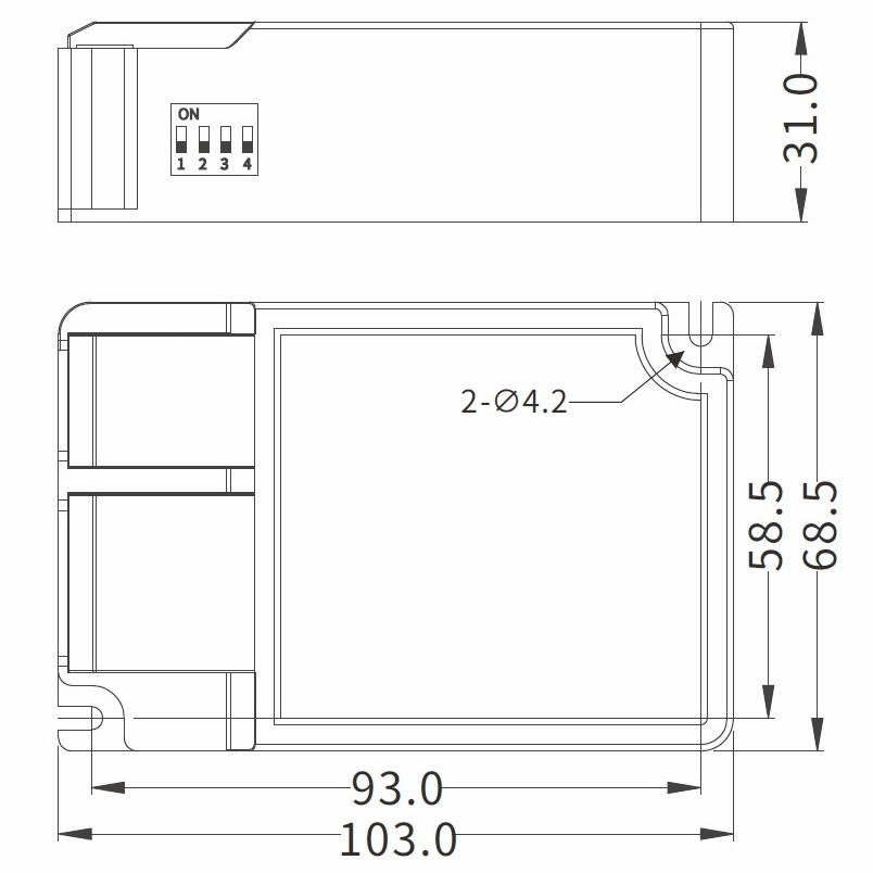 - 16 možných nastavení konstantního výstupního proudu pomocí DIP přepínačů v rozsahu 450-1100mA.