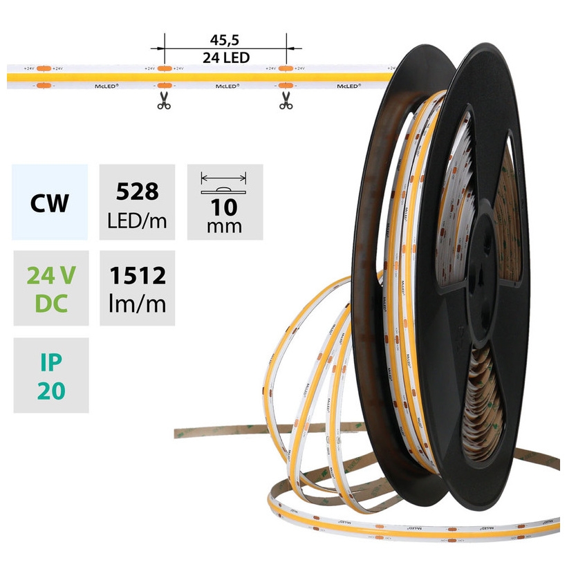 LED pásek MCLED COB CW 528LED/m 14W/m DC 24V 1512lm/m CRI90 IP20 modul 45,5mm 10mm 50m ML-126.128.90.2