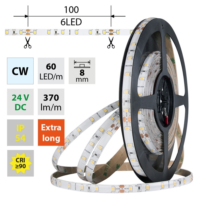 LED pásek McLED SMD2835 CW 60LED/m 4,8W/m DC 24V 370lm/m CRI90 IP54 8mm 5m ML-126.843.60.0