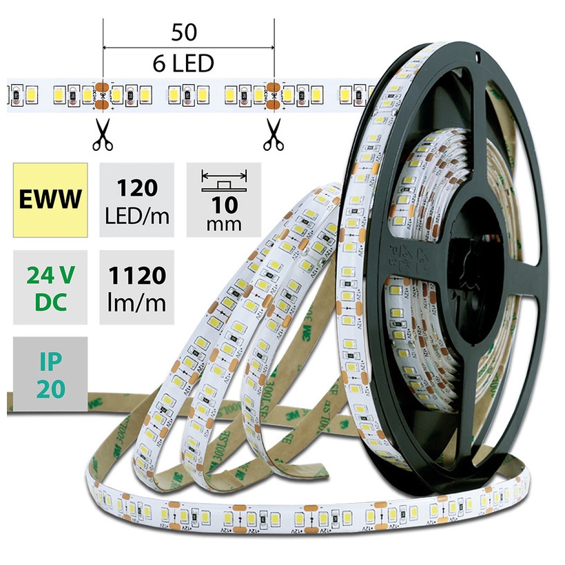 LED pásek McLED SMD2835 EWW 120LED/m 14W/m 1120lm/m IP20 DC 24V 10mm 5m ML-126.827.60.0