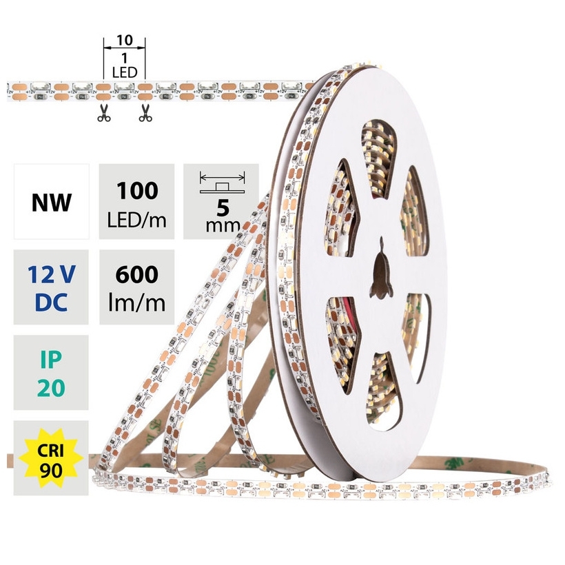 LED pásek stranový SMD3014 NW, 100LED/m, 6W/m, 600lm/m, CRI90, IP20, DC12V, 5mm, 5m
