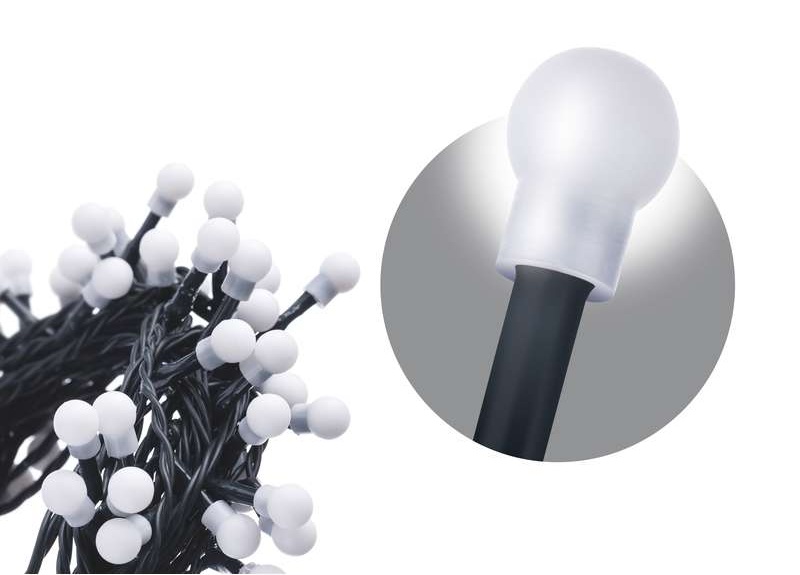 EMOS LED vánoční cherry řetěz – kuličky, 48 m, venkovní i vnitřní, studená bílá, časovač