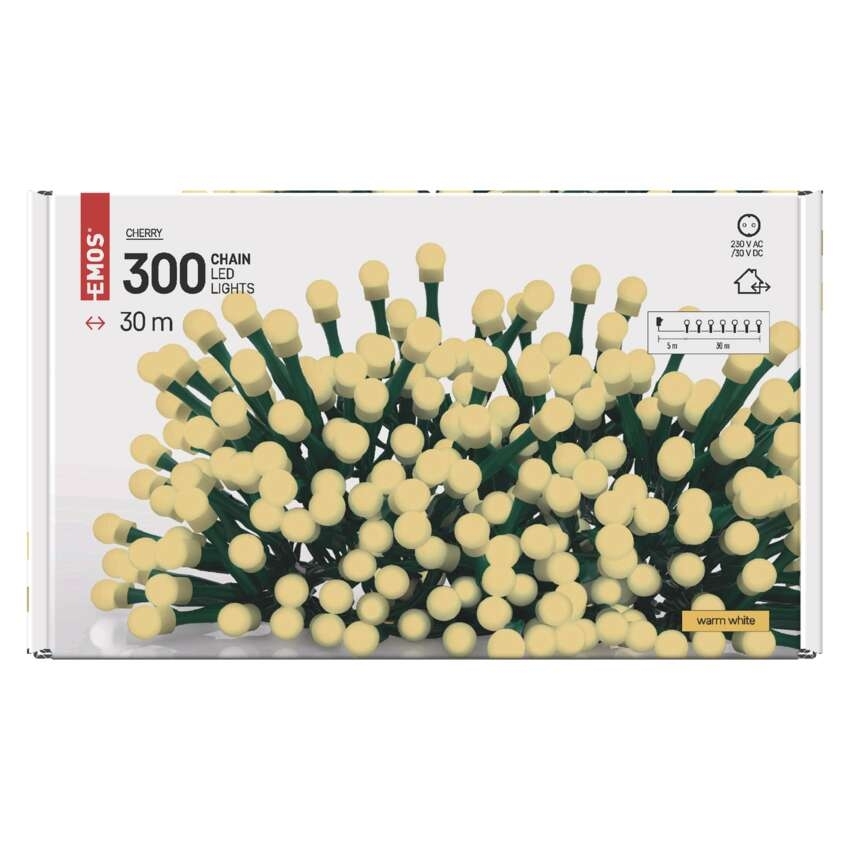 LED vánoční cherry řetěz EMOS D5AW04 300LED 30 m kuličky teplá bílá s časovačem