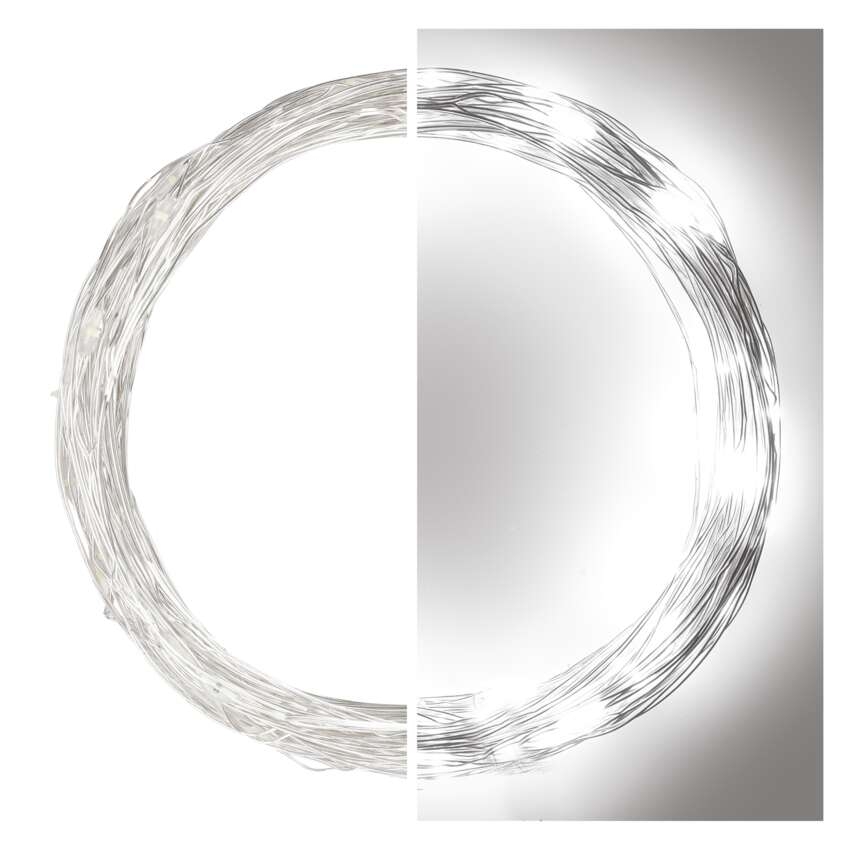 LED vánoční nano řetěz stříbrný, 10 m, venkovní i vnitřní, studená bílá, časovač