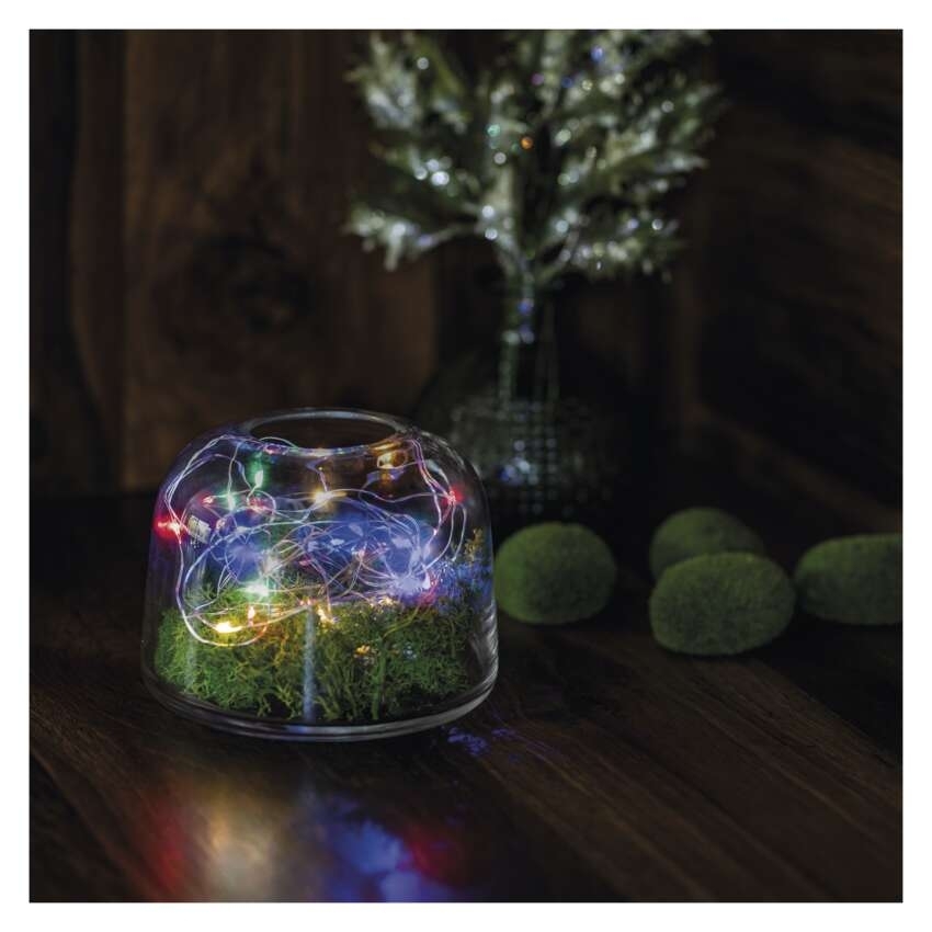 LED vánoční nano řetěz EMOS D3AM04 20LED stříbrný 1,9m 2xAA multicolor s časovačem