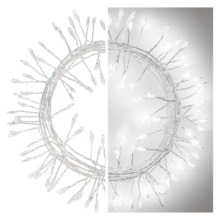LED vánoční nano řetěz - ježek EMOS 100 LED 2,4 m 3x AA vnitřní studená bílá časovač D3FC01
