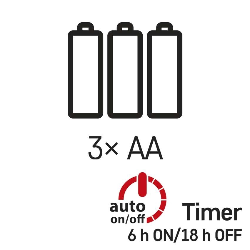 EMOS LED vánoční nano řetěz – ježek, 2,4 m, 3x AA, vnitřní, studená bílá, časovač