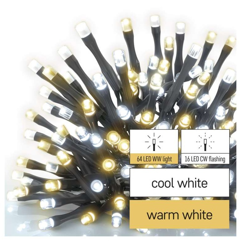 EMOS LED vánoční řetěz blikající, 8 m, venkovní i vnitřní, teplá/studená bílá, časovač