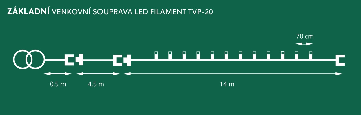 - LED Filament venkovní souprava EXIHAND typ TVP-20 s napájecím transformátorem 230/20 V