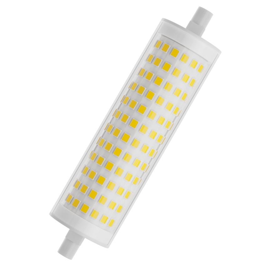 LEDVANCE LED Line 118 177 20W 830 R7S je výkonná LED náhrada za konvenční halogenové světelné zdroje s paticí R7s, určená pro všeobecné osvětlení v interiérech. Poskytuje světelný tok 3000 lm při teplé bílé barvě světla (3000 K) a nabízí široké vyzařování světla v úhlu 300°. Díky dlouhé životnosti až 15 000 hodin a výrazně nižší spotřebě energie ve srovnání s tradičními halogenovými žárovkami pomáhá snižovat provozní náklady. Je vhodná pro domácí a komerční použití, zejména v pohostinství, a díky excentrické patici je kompatibilní s většinou svítidel R7s. LED zdroj nevyzařuje UV ani nadměrné tepelné záření, což chrání osvětlované předměty a zvyšuje bezpečnost použití.
