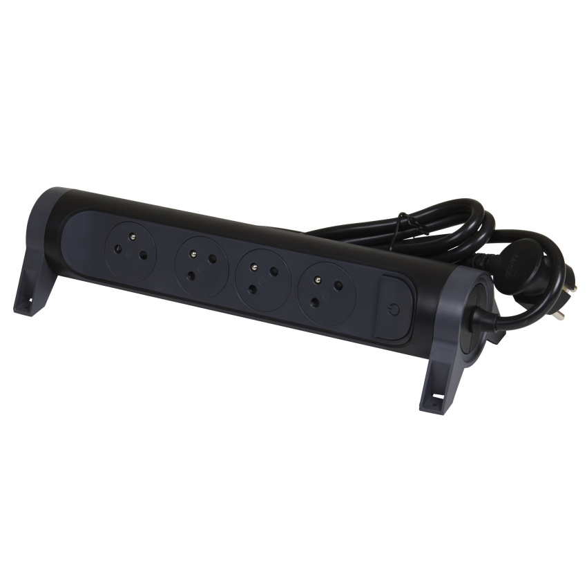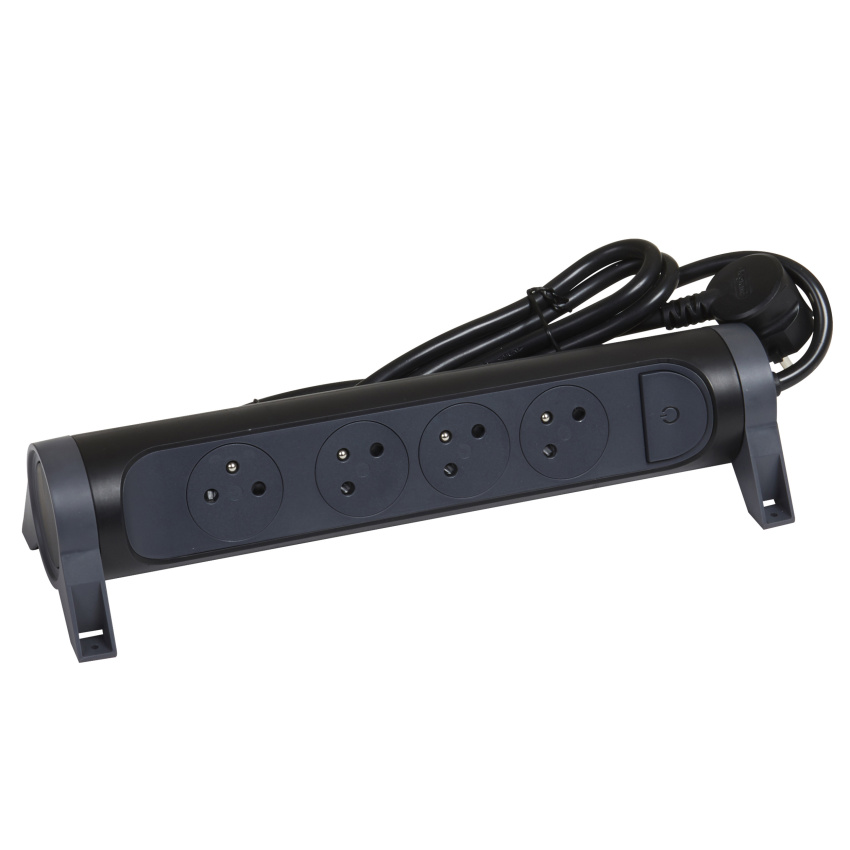 Prodlužovací přívod s válcovým otočným tělem a čtyřmi 2P+T zásuvkami. Díky patentu společnosti Legrand se zarovnaná dna zásuvek zasunou dovnitř až po zastrčení vidlice, tím se dosahuje atraktivního designu a zamezuje hromadění prachu. Pootočené zásuvky poskytují prostor pro připojení i objemnějších nabíječek. Prodlužovací přívod je možné upevnit v horizontální i vertikální poloze a nechybí ani spínač pro vypnutí a zapnutí.