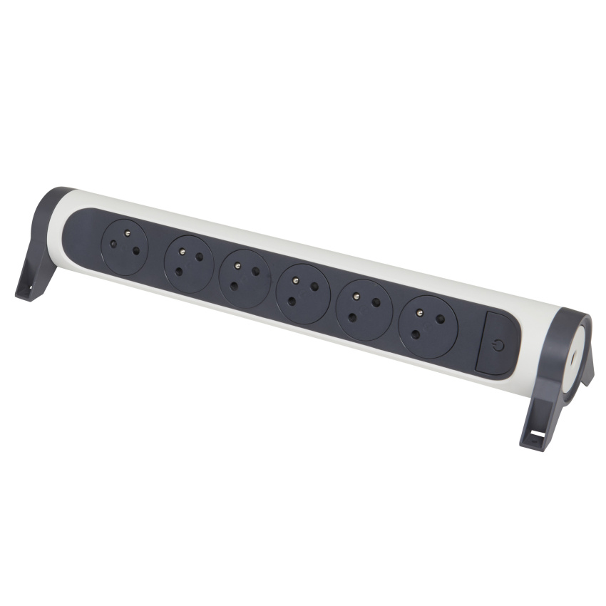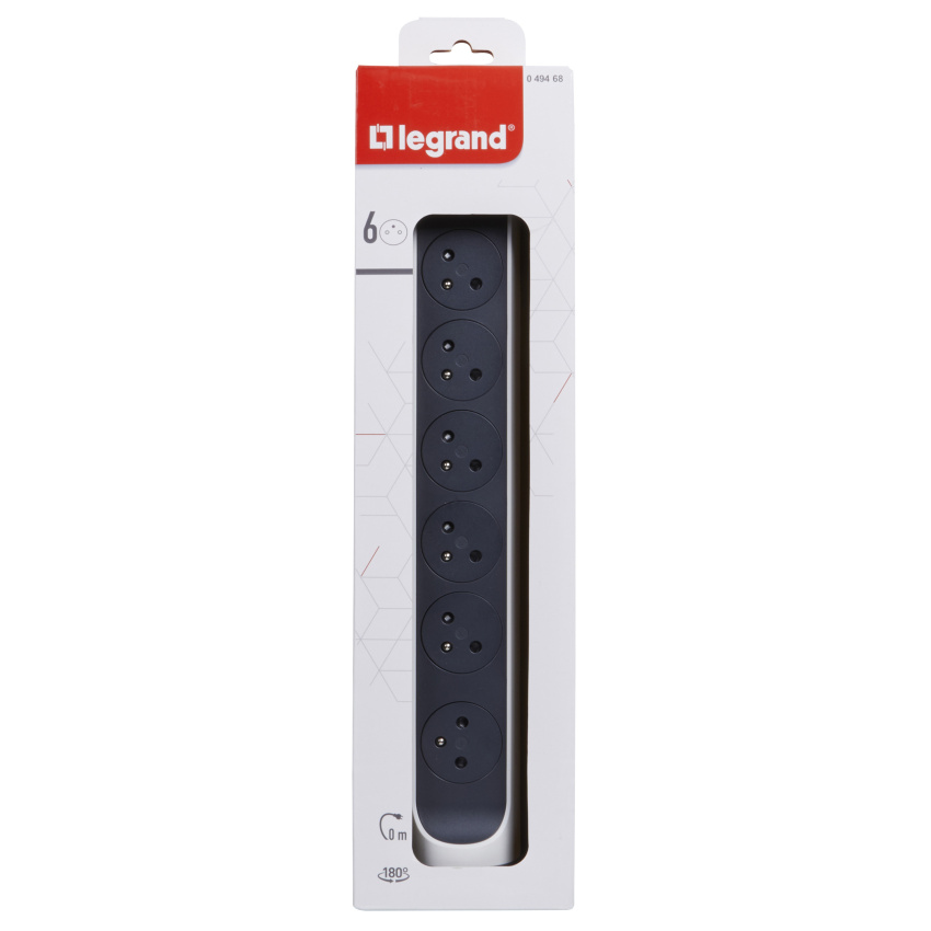 Prodlužovací přívod s válcovým otočným tělem a šesti 2P+T zásuvkami. Díky patentu společnosti Legrand se zarovnaná dna zásuvek zasunou dovnitř až po zastrčení vidlice, tím se dosahuje atraktivního designu a zamezuje hromadění prachu. Pootočené zásuvky poskytují prostor pro připojení i objemnějších nabíječek. Prodlužovací přívod je možné upevnit v horizontální i vertikální poloze a nechybí ani spínač pro vypnutí a zapnutí.