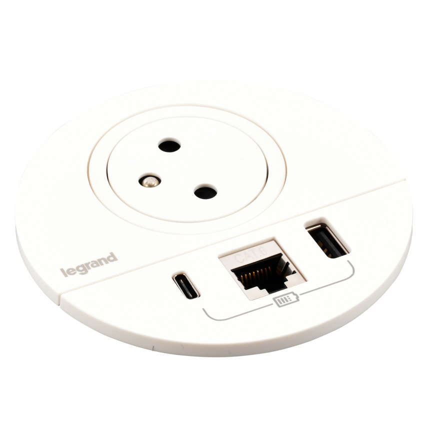 LEGRAND INCARA 654701 ZÁSUVKA ZAPUŠTĚNÁ DISQ 80 2P+T USB A+C RJ45 BÍLÁ 2M KABEL S VIDLICÍ 2P+T