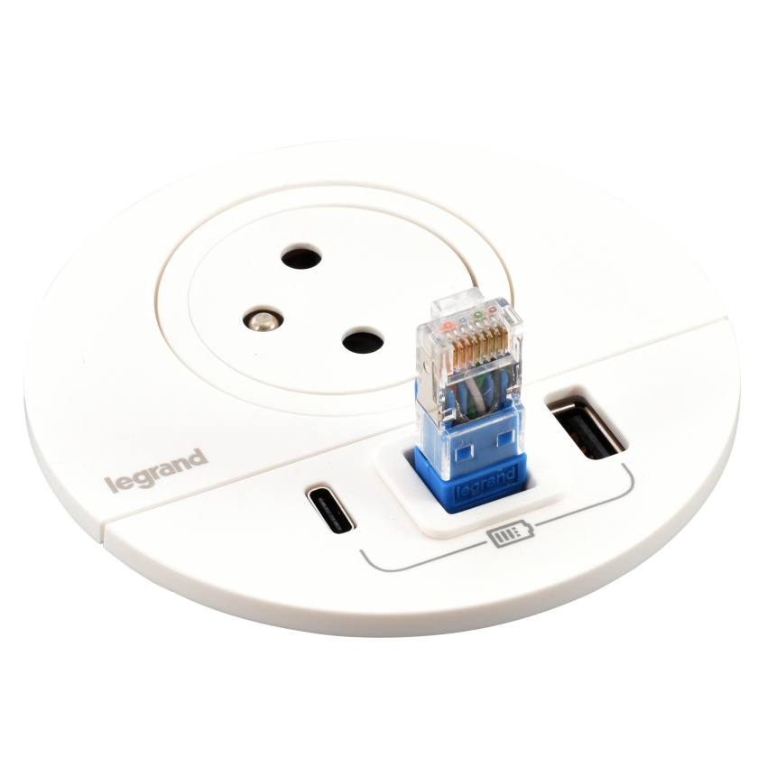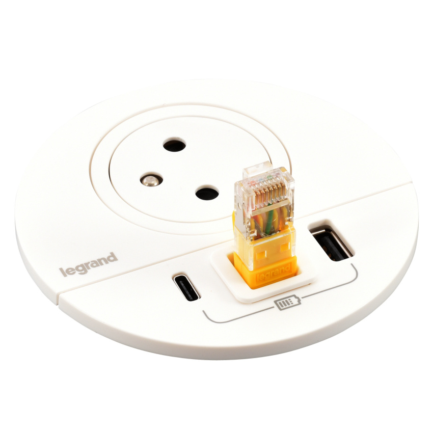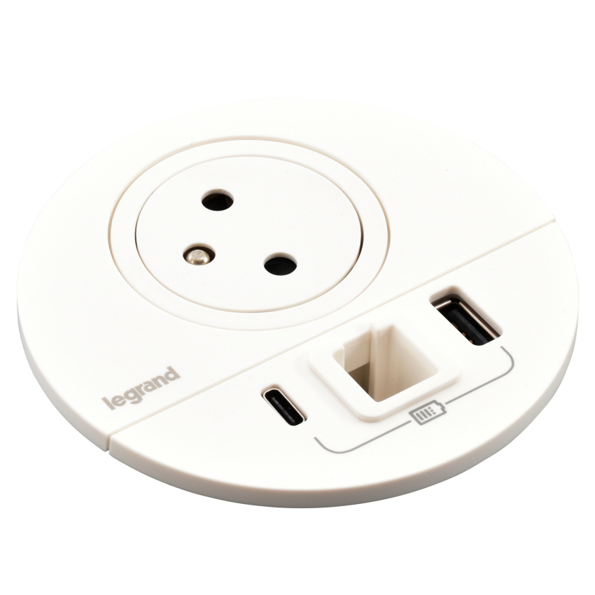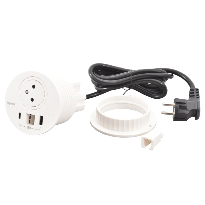 LEGRAND INCARA 654705 ZÁSUVKA ZAPUŠTĚNÁ DISQ 80 2P+T USB A+C BÍLÁ KABELOVÁ VÝVODKA 2M KABEL S VIDLICÍ 2P+T