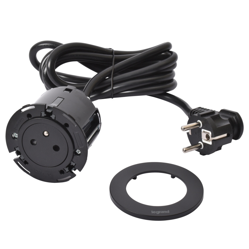 LEGRAND INCARA 654721 ZÁSUVKA ZAPUŠTĚNÁ DISQ 60 2P+T ČERNÁ 2M KABEL S VIDLICÍ 2P+T