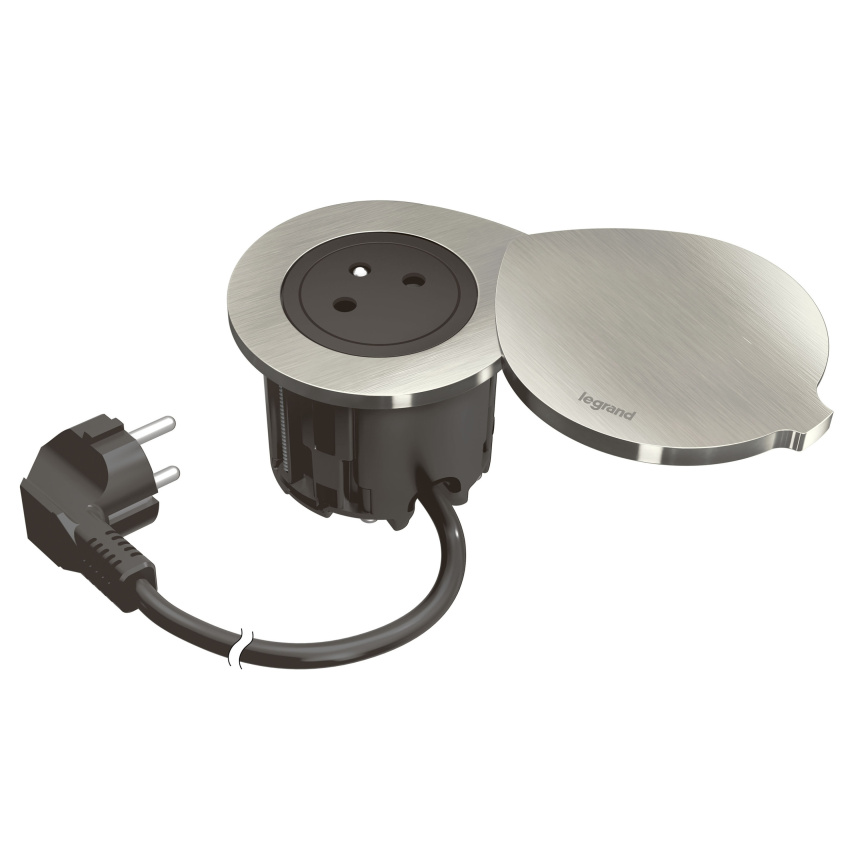 LEGRAND INCARA 654723 ZÁSUVKA ZAPUŠTĚNÁ DISQ 60 2P+T ČERNÁ S KOVOVÝM KRYTEM 2M KABEL S VIDLICÍ 2+T