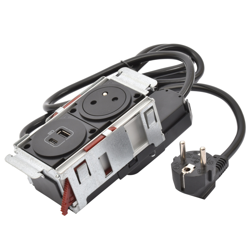 DISQ'IN ZAPUŠTĚNÝ ZÁSUVKOVÝ BLOK 2P+T USB A+C ČERNÁ 2M KABEL S VIDLICÍ 2P+T DISQ'IN ZAPUŠTĚNÝ ZÁSUVKOVÝ BLOK 2P+T USB A+C ČERNÁ 2M KABEL S VIDLICÍ 2P+T
