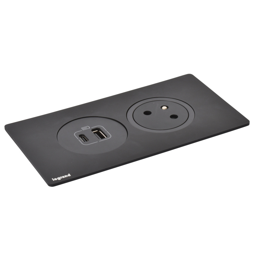 LEGRAND INCARA 654743 BLOK ZÁS. DISQIN ZAPUŠTĚNÝ 2P+T USB A+C ČERNÁ 2M KABEL S VIDLICÍ 2P+T