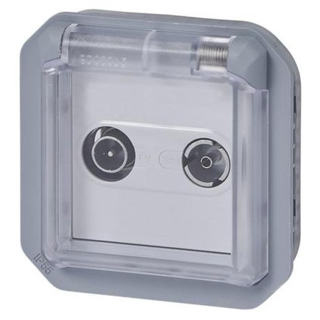 Zásuvka Legrand Plexo New 069554L je koncová TV/R/SAT zásuvka navržená pro spolehlivé a kvalitní připojení televizních a satelitních signálů. Vyznačuje se odolným provedením s krytím IP55 a rázovou pevností IK08, což zaručuje ochranu proti prachu, vlhkosti a mechanickému poškození. Díky kompaktním rozměrům a matnému povrchu se hodí do moderních elektroinstalačních systémů. Je vyrobena z bezhalogenového termoplastu a určena pro instalaci do prostředí s teplotou od -5 °C do +35 °C.
