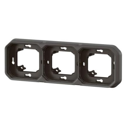 Trojnásobný montážní rámeček Legrand Plexo New 069608L v antracitovém provedení je určen pro zapuštěnou montáž a umožňuje horizontální i vertikální umístění. Je vyroben z odolného bezhalogenového termoplastu s matným povrchem pro dlouhou životnost a moderní vzhled. Instalace je snadná díky pevnému šroubovému upevnění. Tento rámeček je vhodný pro použití v domácnostech, komerčních i průmyslových instalacích v rámci systému Plexo New.
