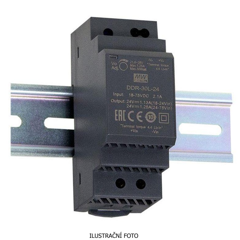 MEAN WELL MĚNIČ DC/DC NA DIN LIŠTU DDR-30G-12 30W VSTUP 9-36V DC VÝSTUP 12V 0-2.5A 94591