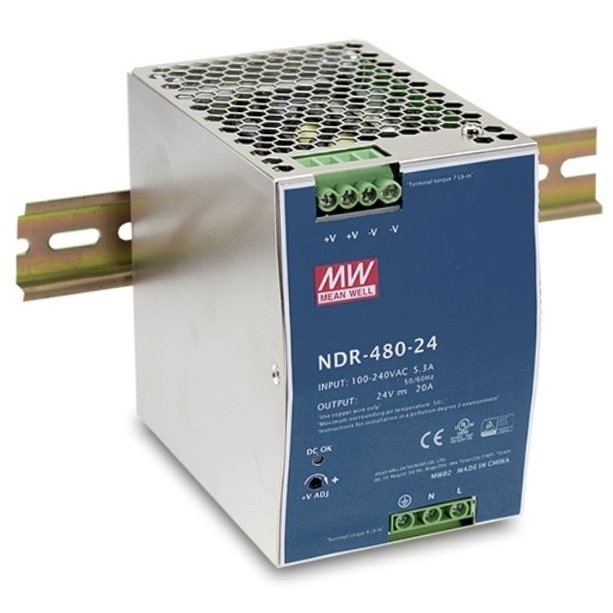 MEAN WELL ZDROJ AC/DC NA DIN LIŠTU NDR-480-24 480W VSTUP 90-264V AC, 127-370V DC VÝSTUP 24V 0-20A 92502
