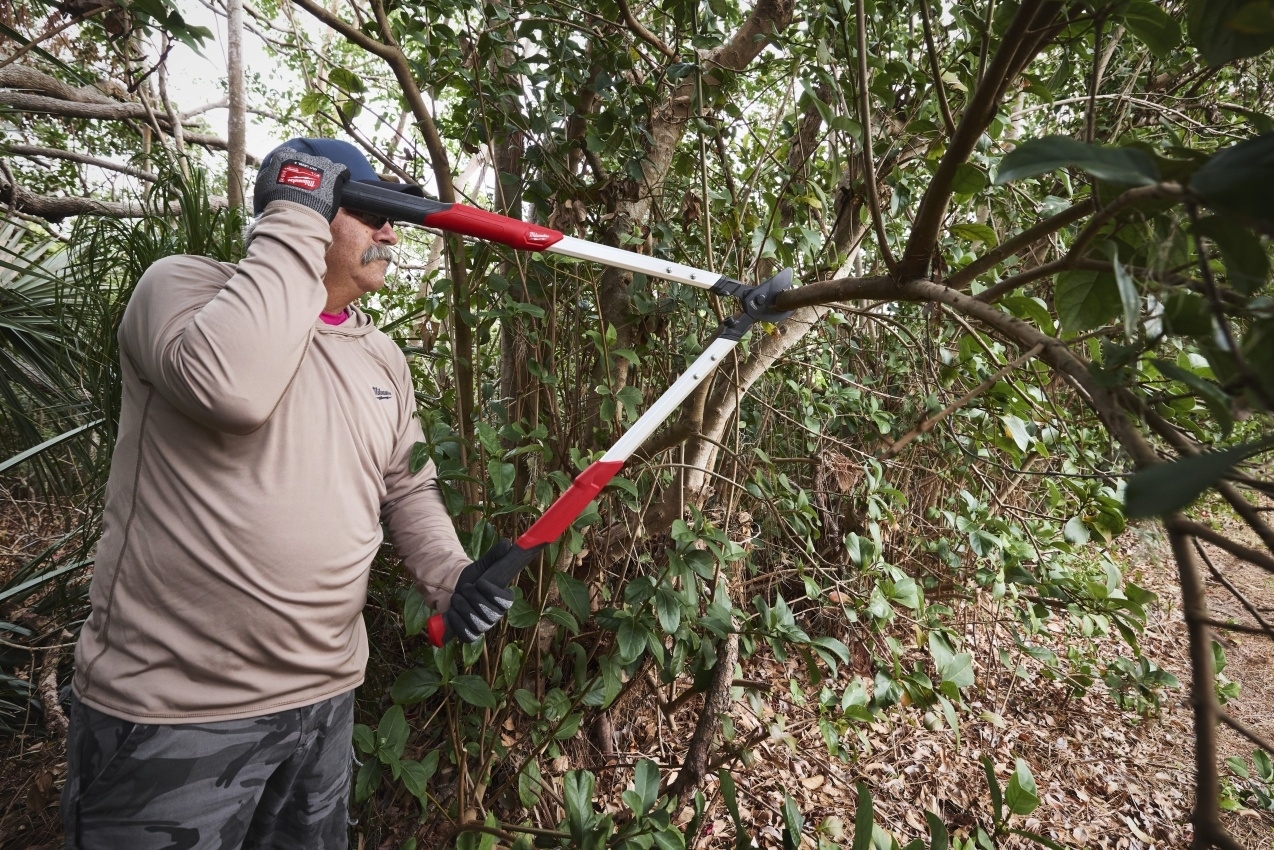 Nůžky na větve MILWAUKEE s přímým střihem 50 mm pro efektivní prořezávání větví až do průměru 50 mm.