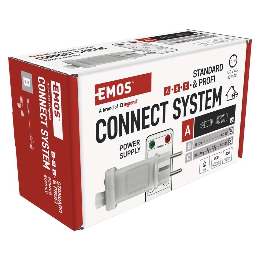 - Na jeden adaptér lze napojit až 800 LED světýlek systému CONNECT SYSTEM STANDARD nebo 500 LED světýlek systému CONNECT SYSTEM PROFI.
