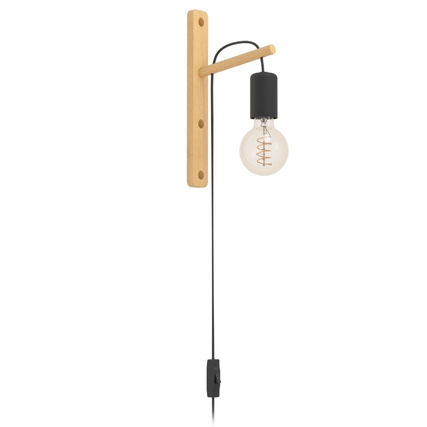 Nástěnné svítidlo EGLO POCKLEY 44013 s elegantní kombinací dřeva a černé oceli, ideální pro moderní i industriální interiéry.
