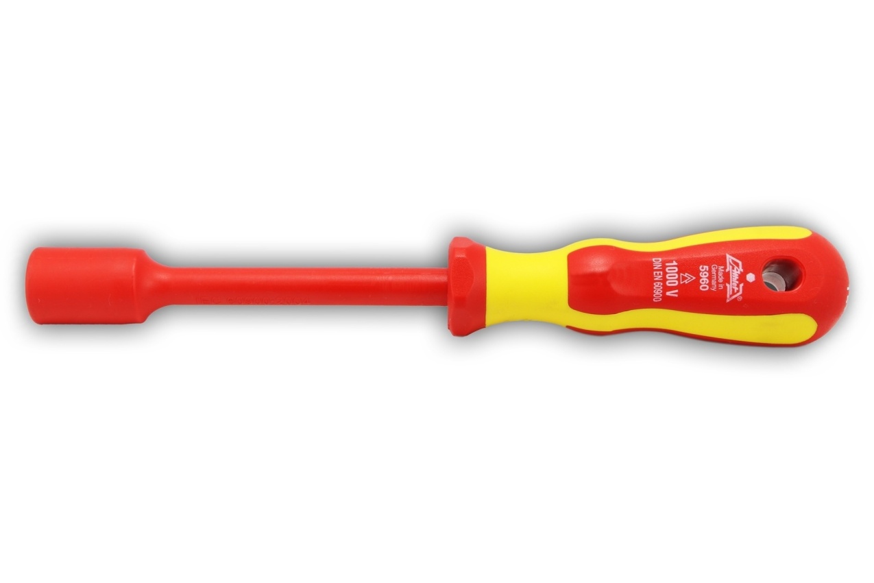- Izolovaný nástrčkový klíč, oříšek a dřík vyroben ze speciální oceli chrom-vanadium, šestihranný nástrčný klíč kalený, speciálně tvarovaná dvoukomponentní rukojeť, pohodlné šroubování a optimální zacházení zásluhou dokonalého, ergonomického tvaru rukojeti zamezí sklouznutí v kritických situacích a umožňuje nejvyšší kroutící momenty,