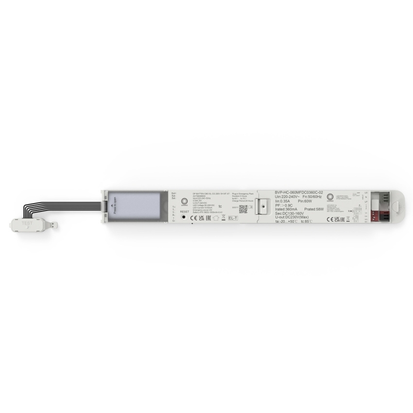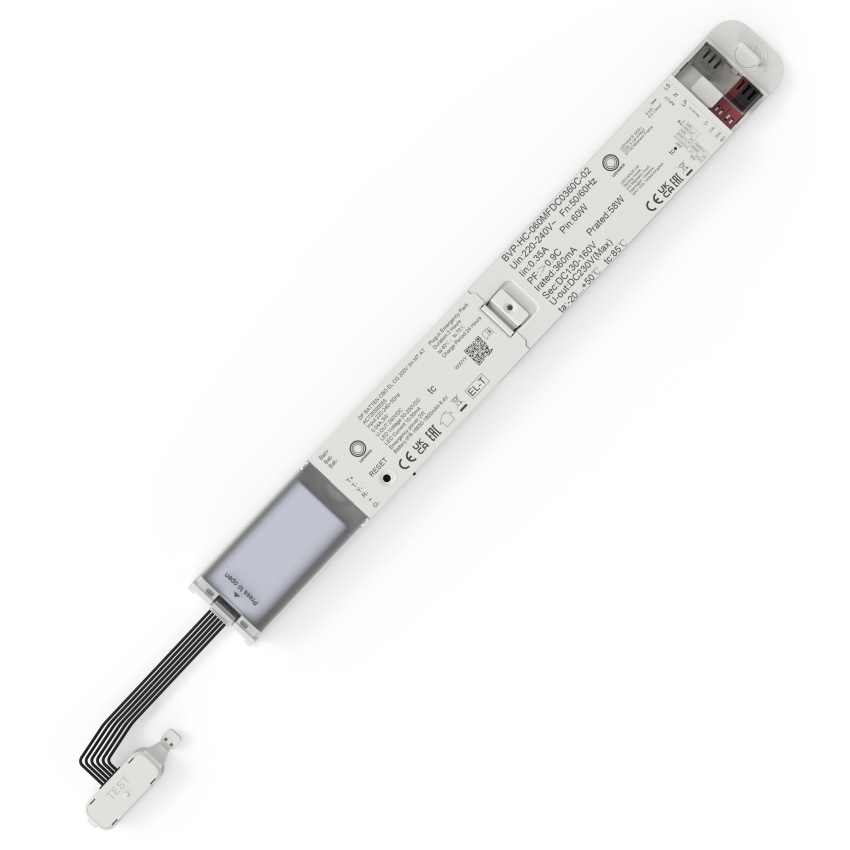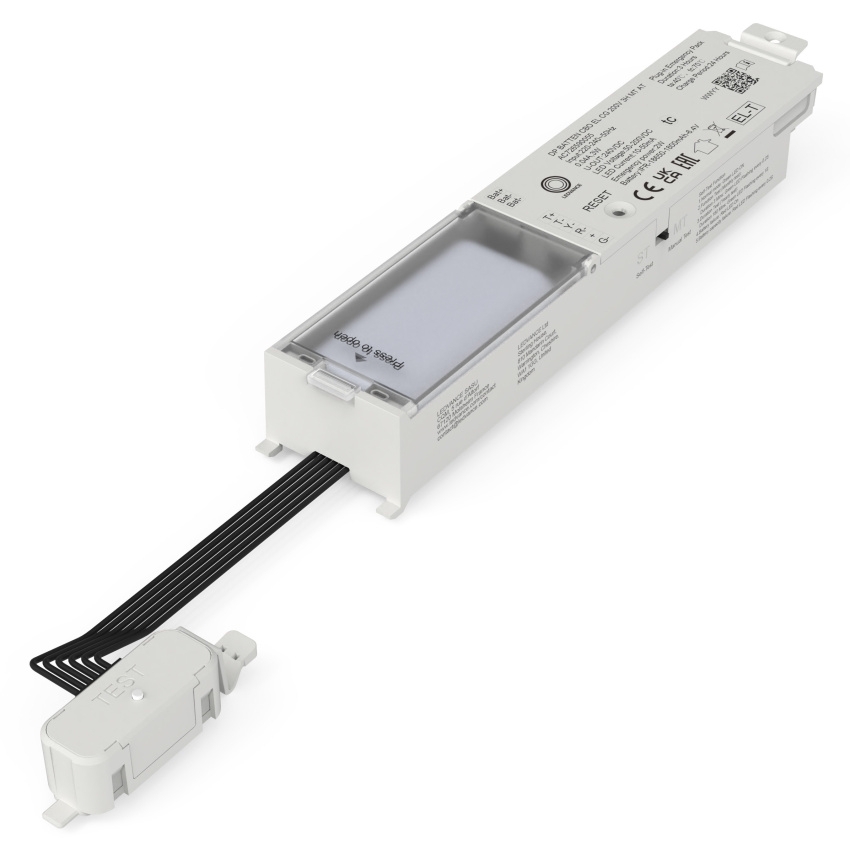 Nouzový modul LEDVANCE DP BATTEN CBO EL CG 200V 3H MT AT umožňuje snadno rozšířit standardní svítidla řady DP CBO (ON/OFF) o nouzovou funkci díky konceptu Plug & Upgrade. Integrovaná baterie LiFePO4 poskytuje autonomii > 3 h a údržbu zjednodušuje podpora manuálního (MT) i automatického (AT) testování, včetně rychlého přístupu přes integrovaný testovací spínač. Modul je vybaven bezšroubovou svorkou pro rychlé připojení, má kompaktní rozměry a odolné tělo z PC; je určen pro vnitřní použití (IP20) s provozem v rozsahu 0…+40 °C.