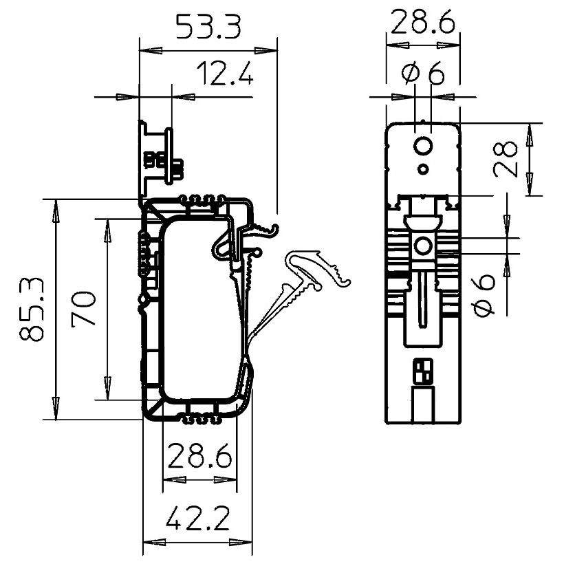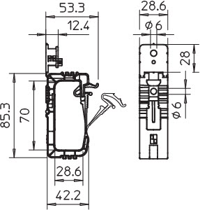 Příchytka na kabel pro všeobecné použití, vhodné pro montáž na stěnu nebo na strop. Boční upevňovací prvek lze upevnit pomocí natloukacích kotev nebo tlaku plynu nastřelovací pistolí. Upevňovací otvory průměru 6 mm, doporučená upevňovací vzdálenost při plném: 50 - 60cm. Kamenná šedá verze: odolná proti šíření plamene verze, speciálně pro použití v pozastaven stropy, nehořlavého dle DIN VDE 0471/DIN IEC 695 část 2-1, zkušební teplota 960 ° C. Počet vedení NYM 3 x 1,5: 20