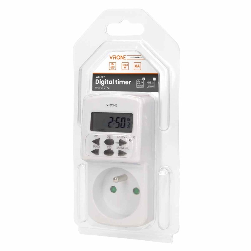 Digitální časovač ORNO MINI DT-2 s 10 programy od výrobce VIRONE. Kompaktní zařízení pro přesné časové řízení.